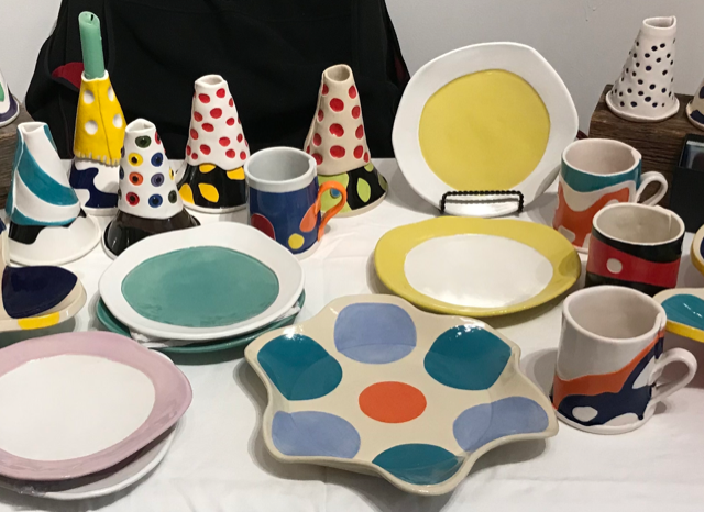 Kate Oliver, Local Ceramics Artist, has always loved getting her hands dirty- first gardening and then pottery! She began making pottery shortly after retiring from a career as a psychologist and professional mediator. She developed her ceramics skills at Edmonds College for 12 years and now works at Gather Pottery, a studio in the Interbay neighborhood of Seattle. She considers her style to be Architectural Whimsey.