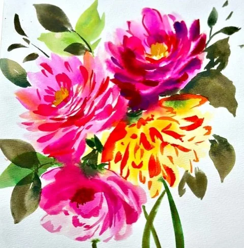 Erin Staples is the artist and small business owner behind Erin Jane Designs. After 16 years creating thousands of one-of-a-kind fine jewelry pieces, she turned her lifelong love of color toward watercolor painting in 2020. Erin paints florals and moody landscapes inspired by the endless textures and colors found in nature. Her work reflects a deep appreciation for nature, celebrating color, movement and mood through expressive color palettes. Erin lives in Edmonds, Washington, with her husband, two kids, two dogs, and a lizard.