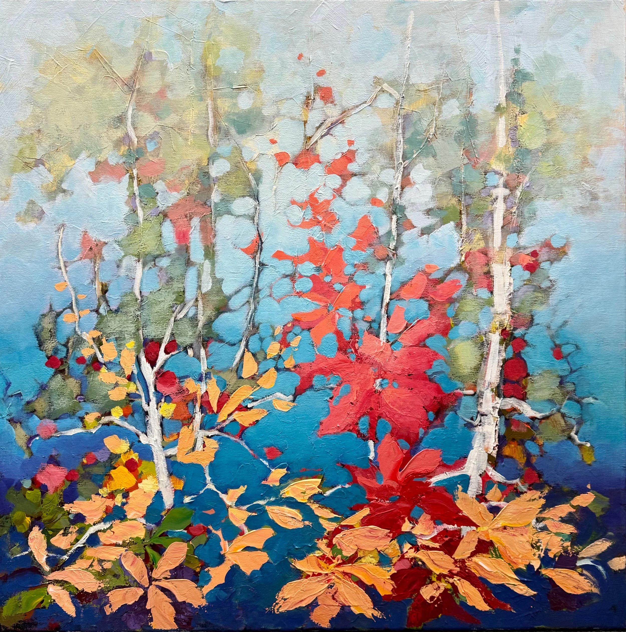 In "The Illuminated Forest" with Teresa Smith, trees, water, and air dissolve into a radiant language of light. Fragmented, colorful forms layer like stained glass, where light shifts, refracts, and glows between shapes. Water mirrors and amplifies this brilliance, offering moments of stillness amid movement. Guided by both observation and intuition, these paintings transform familiar landscapes into a luminous rhythm, inviting the viewer to feel the forest as much as see it.