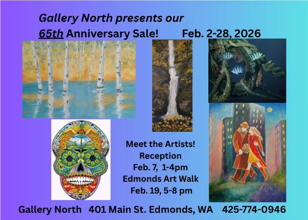 Join Gallery North for a special celebration marking the cooperative’s 65th anniversary. Experience a vibrant collection of artworks by 17 talented member artists and artisans, offered at discounted prices as part of our Anniversary Sale.