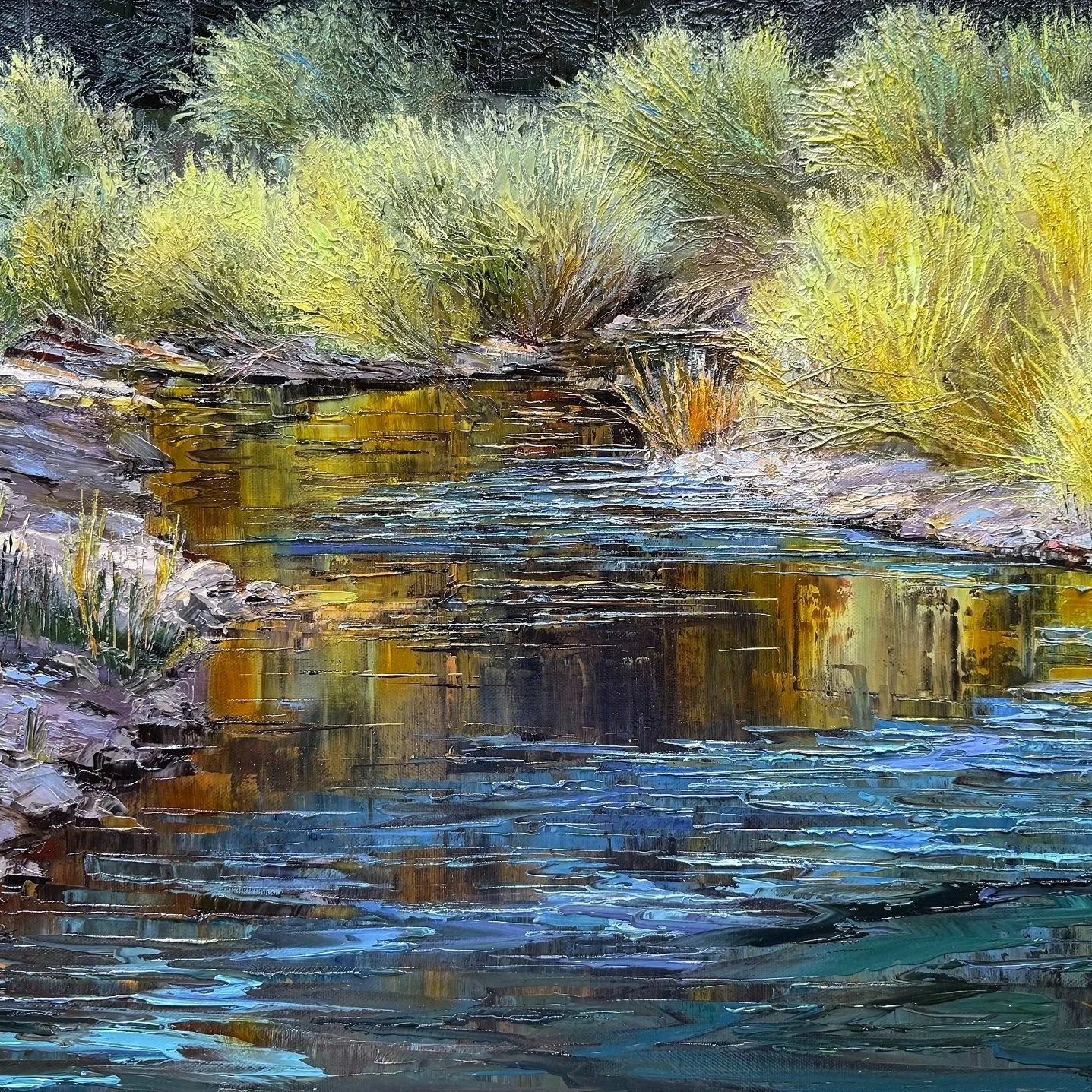 We're celebrating summer with four great artists! Pat Clayton, Ray Ward, Ron Stocke & Jenna von Benedikt. From Pat Clayton's textural palette knife landscapes to Ray Wards glowing beachscapes this show is a stunner! Pat Clayton is known for her striking palette knife work, painting reflections surrounded by the beauty of textural landscapes. Inspired by the rivers and streams of Washington, and other local natural sources, her latest landscape collection seems to glow in three dimensions.