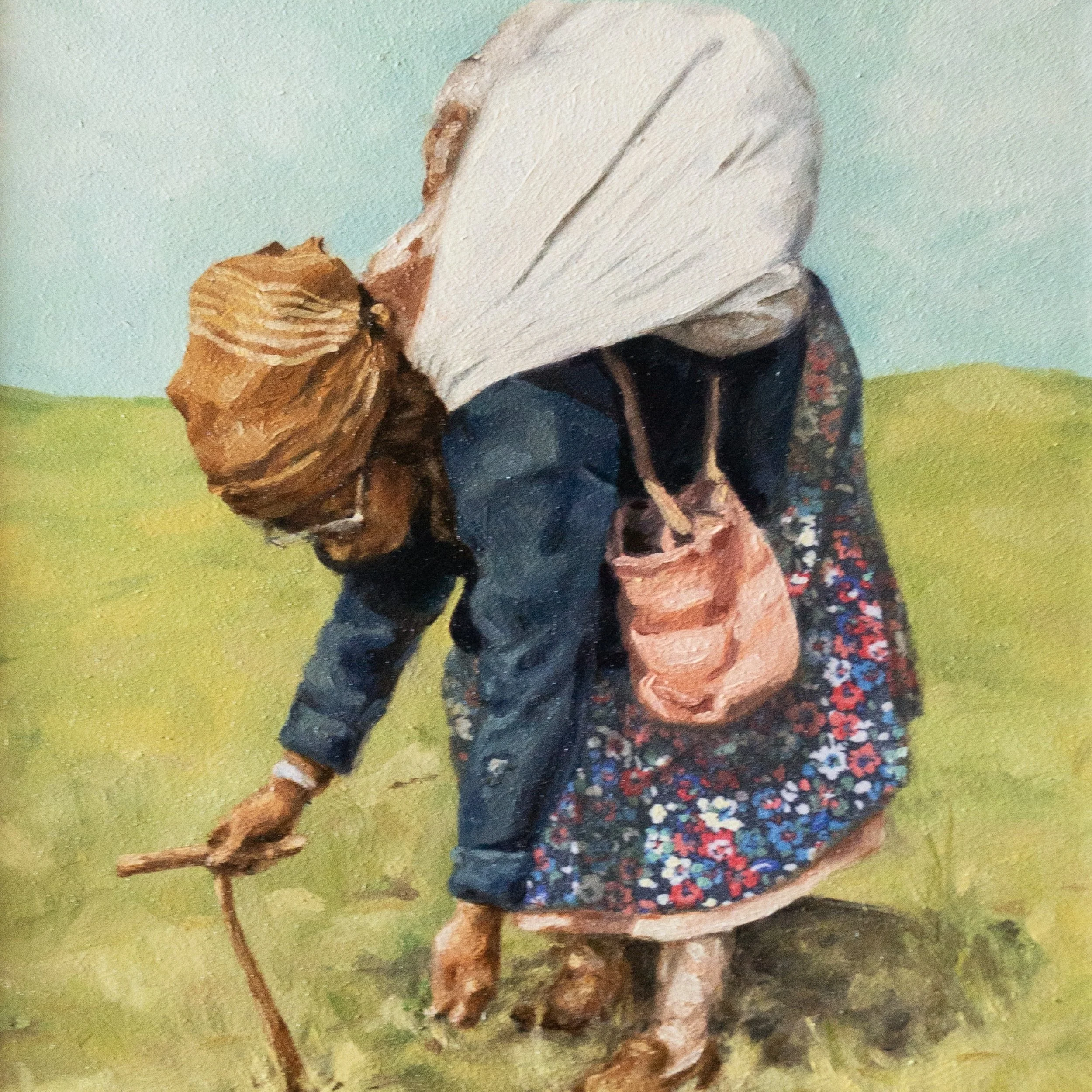 Sydney Kaemmerlen is a Seattle-based oil painter and mixed-media artist. Originally from St. Louis, Missouri, Sydney graduated from Vanderbilt University in Nashville, Tennessee in 2020 with a Bachelor’s in both Fine Art and Psychology before moving to Seattle in 2021. Her favorite subjects to paint are portraits and scenes of everyday life, often inspired by local historical imagery. She has also recently begun experimenting with using patterned fabrics as her canvas surface, incorporating the design as an element hidden within the painting. In addition to her personal art practice, Sydney is honored to serve as the Museum Store Manager at Cascadia Art Museum in Edmonds.